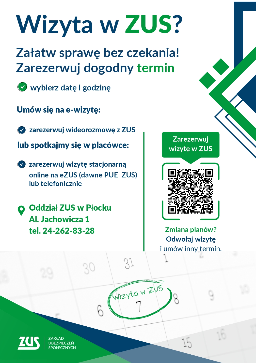 - telefonicznie w najbliższym oddziale ZUS - Zarezerwuj wizytę w placówce ZUS;