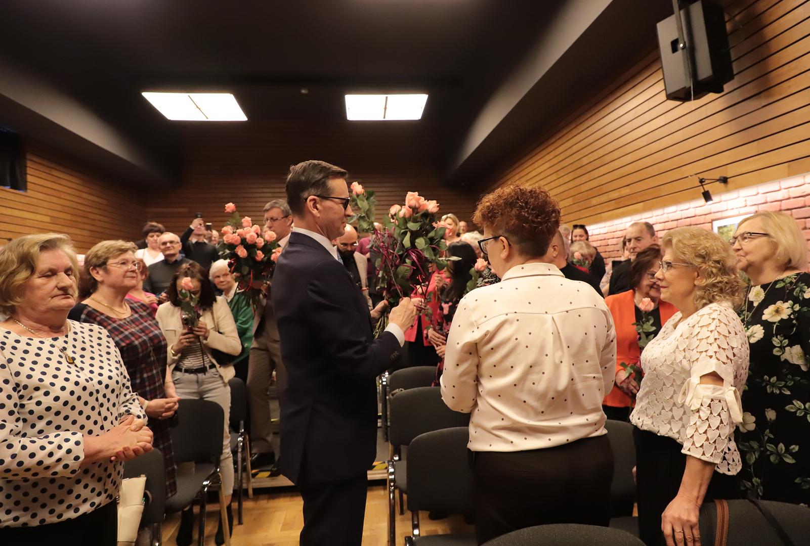Gdy sala zaczęła wypełniać się paniami oczekującymi na koncert, pojawił się wyjątkowy gość były Premier Rządu RP - Poseł na Sejm Rzeczypospolitej Polskiej Mateusz Morawiecki. Premier złożył wszystkim paniom serdeczne życzenia z okazji Dnia Kobiet.