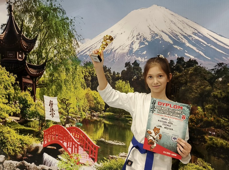 Lena Wójcicka wykazała się najlepszą precyzją i zajęła I miejsce w konkurencji kata dziewcząt 10 – 11 lat.
